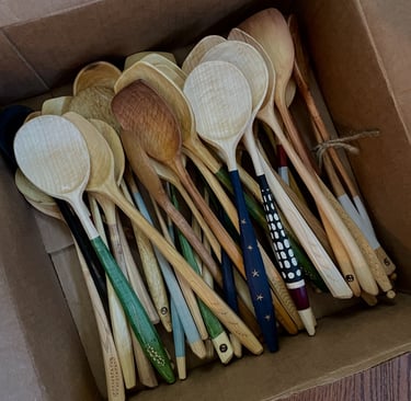 I’m excited to keep leaning into commission work as a way to put more good into the world and connect with more wonderful people; to continue developing my Storm Drop series as a way of honoring the trees each spoon comes from; to meet more fellow spoon fanatics (and lovers of the idea of spoons); and to keep learning—about carving, storytelling, and how to run a small craft business with care, integrity, and joy.