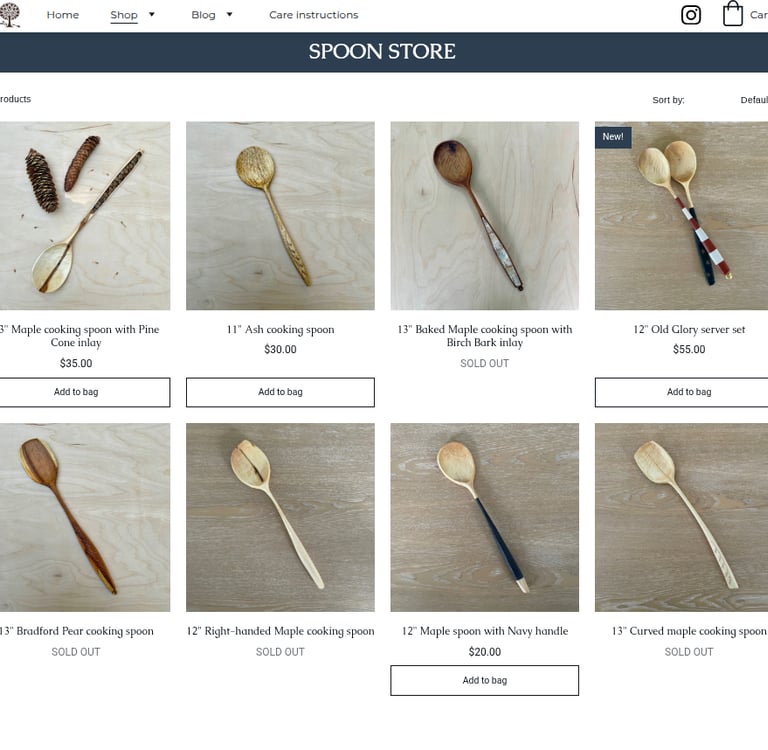 Hand carved wooden spoons honoring local trees and community. Made in the USA .