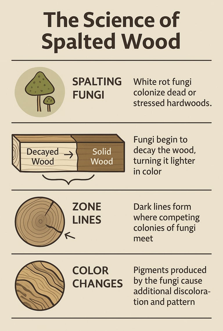 🌿 Dive into the science of spalting with Oregon State University’s Wood Science & Engineering Department — Their research into fungal pigmentation and zone-line formation is some of the most detailed available, and offers a fascinating look at the biology behind spalting.