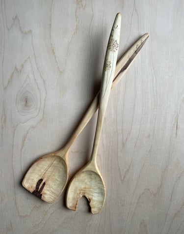 Each Spoonweather spoon is hand-carved from fallen New England wood, transforming everyday branches into one-of-a-kind functional art. Every piece is unique, reflecting the natural grain, spalting, and imperfections that make it truly special.